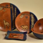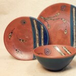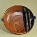 WHEEL THROWN, TRIMMED & HANDPAINTED STONEWARE DINNER PLATE. 10″ wide. Food, microwave, dishwasher & oven safe
