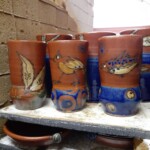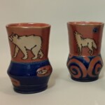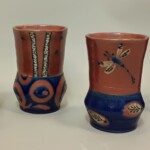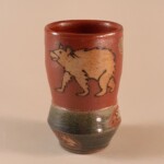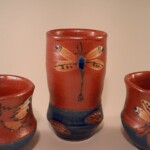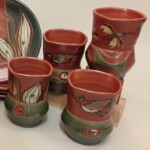 SOON TO BE YOUR FAVORITE WINE GLASS! 10 or so oz., 4.75″ tall x 2.27 wide at the rim. Blue or Green glaze accent, food, microwave, dishwasher safe.