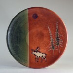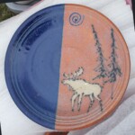 WHEEL THROWN, TRIMMED & HANDPAINTED STONEWARE DINNER PLATE. 10″ wide. Food, microwave, dishwasher & oven safe