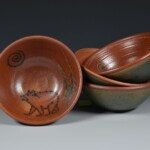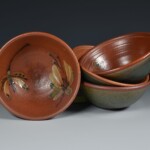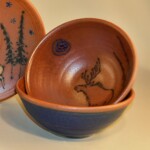 Stoneware bowl perfect for your morning oatmeal (microwave safe!) or your nightly ice cream. 6.25″ wide x 2.5″ deep. Blue or green glaze accents, many motifs available.